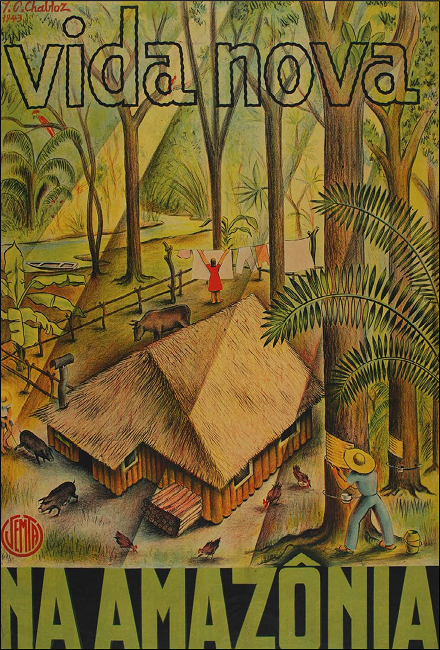 Ao atribuir ao nordestino a épica tarefa de ocupar a Amazônia, o discurso varguista o representava como um sertanejo valente que, graças a seu ‘instinto’ desbravador e contando com o apoio do governo, livraria a Amazônia da habitual caracterização de ‘Inferno Verde’. Essa ideia estava presente no “Discurso do Rio Amazonas”, proferido por Vargas em 9/10/1940, em sua visita a Manaus, durante o banquete em que foi homenageado pelo interventor Álvaro Maia. O discurso foi reiteradamente celebrado pela imprensa como a primeira manifestação pública de interesse do governo central pela Amazônia (Andrade, 2007; Guillen, 1999; Secreto, 2007b).