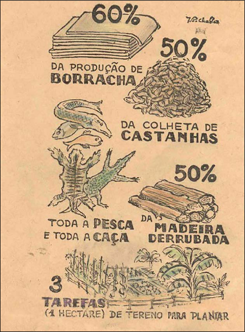 Chabloz, J.-P. (1943e). Página da cartilha do soldado da borracha. 21 x 13 cm. Acervo Jean Pierre Chabloz, Museu de Arte da Universidade Federal do Ceará, Fortaleza.