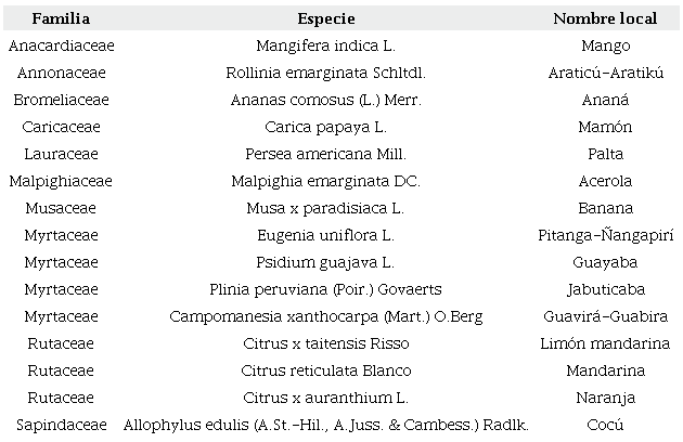 En la presente investigación no se cuenta con la información sobre los patrones de consumo de estos alimentos dentro de las UD (en cantidad, prácticas de consumo y de conservación, distribución intrafamiliar, etc.), por lo que no se puede afirmar el nivel de aprovechamiento de los nutrientes aportados por los frutales estudiados. Por este motivo, se plantea el valor nutritivo como un aporte potencial y no absoluto.