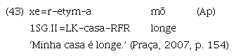 Assim, ao invés de escreverem mõ ihoni mi͂pe, há registros de escrita evidenciada no exemplo (45) pelos falantes como mõ iho ni mi͂pe ou mõ iho nimi͂pe. Essa seria uma evidência de que sufixo já não é mais interpretado pelos falantes como parte da informação verbal, mas como um morfema associado ao sintagma posterior ao verbo.