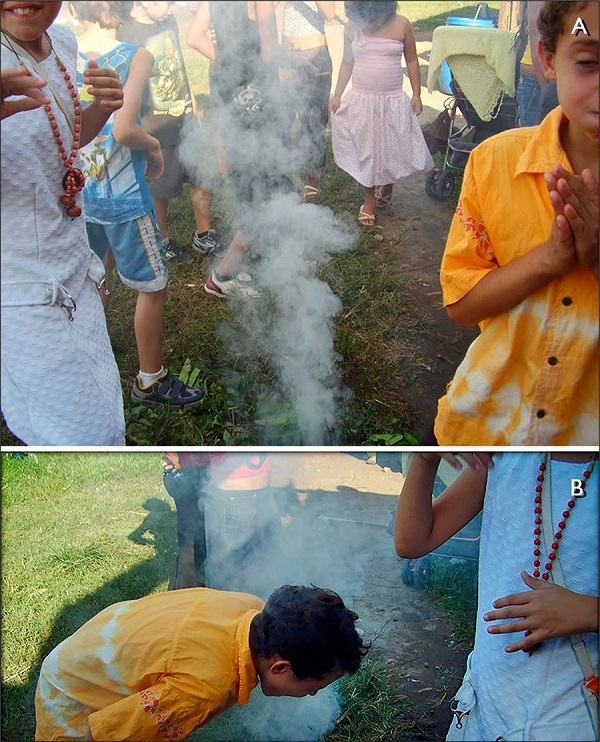 Silva (2014, p. 72) analisou detalhadamente as formas de induzir, provocar e negociar a relação com a alteridade extra-humana, objetivando incorporar habilidades e conhecimentos, que estão materializados em corpos, pedaços ou partes de outros seres do cosmos, através de inúmeras técnicas e rituais, que vão desde a confecção e o uso de pinturas, ‘adornos’, ‘objetos’ junto ao corpo (Figura 1),passando pelo banho (Figura 2), fumigação (Figura 3), ingestão, fricção, inalação de parcelas dos corpos desses seres do cosmos, até a experiência onírica, onde a relação com a alteridade acontece, sem esquecer das potências dos jangré e dos kujà.