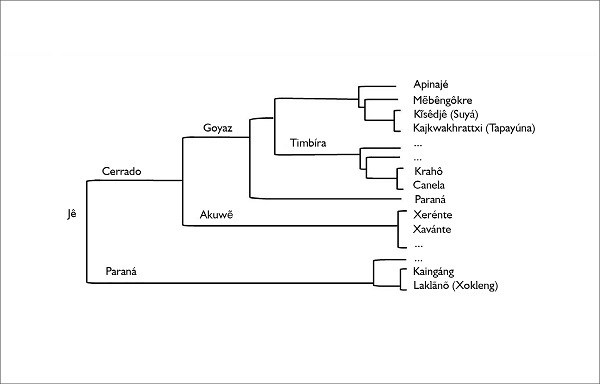 In the literature, the Jê and Macro-Jê languages are named, spelled and classified in different ways. We follow the glossonyms, spelling and classification proposed by Andrey Nikulin (personal communication, 2020) (cf. also Nikulin & Salanova, 2019). Figure 1 shows the Jê languages that are central to this paper. For three languages we add alternative glossonyms. ‘Akuwẽ’ corresponds to the traditional label ‘Central’, and ‘Goyaz’ and ‘Paraná’ are close to what traditionally refers to ‘Northern’ and ’Southern’, respectively.