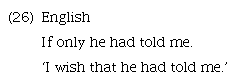 But there is also a difference with insubordination. The ‘that’ structures like that of (25) occur in a limited set of contexts (like astonishment) and the ‘if only’ structures like in (26) occur with apodoses that allude to an unpleasant consequence. This constancy allows for conventionalization. With the main predication use of a secondary predication like in (23), however, there are no typical contexts and hence the chances for conventionalization are slim.