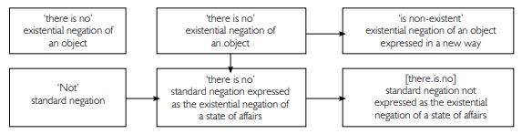 The schema makes it clear that the third stage is similar to the first stage in having two different negators. But the negators are formally different from the ones in the first stage, with this special feature that the new standard negator derives from the old existential one.