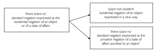 These (potential) polyfunctionalities show the affinity of standard negation to both existential and privative negation, but they don’t tell us anything about the diachrony.