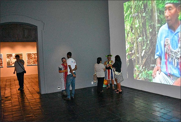 The exhibition took place in a gallery consisting of five adjoining rooms on a space of altogether 350 m2. The hosting institution, MEP, is located in the former Governors’ Palace of the State of Pará in the old centre of Belém. Built in the 18th century as a residency for the Portuguese court, the building witnessed the most important moments in the history of the State. Having been the seat of a government in colonial times in one of the two Brazilian cities that most profited from the rubber boom in the Amazon region and hosting an exhibition about one of the indigenous groups that most suffered from the same development, turns the occupation of the place itself into a symbol. This corresponds to Ravelli’s observation that a museum itself is a ‘spatial text’, a communicative resource replete with meaning that can be analysed in terms of what it represents, what we can ‘see’ in it and what we can do with it (Ravelli, 2016, p. 524-527). According to Antonio Eutalio Corrêa, MEP museologist, the mediation influenced by factors related to the place of the exhibition can be read as a “conquest”:
