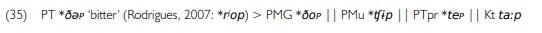 we consider (c) to be a positional development of PT *ə (rather than the default reflex of a PT phoneme of its own, symbolized as *o by Rodrigues (2005);