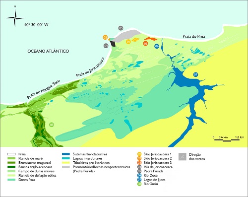 Since 2008, extensive areas with archaeological remains have been identified in the Jericoacoara National Park, on the municipality of Jijoca de Jericoacoara, west coast of the state of Ceará. They are found in aspersion zones, blowouts and wind corridors, and are very common erosion features of the dune fields that dominate the coastal plain landscape.