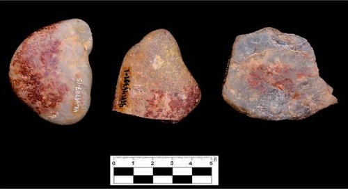 Uma descoberta recente na caverna de Antón, na Espanha, inclui conchas com resíduos de ocre (óxido de ferro) e ferramentas de quartzito que podem ter sido utilizadas para macerar e processar o ocre (Zilhão et al., 2010) (Figura 1).