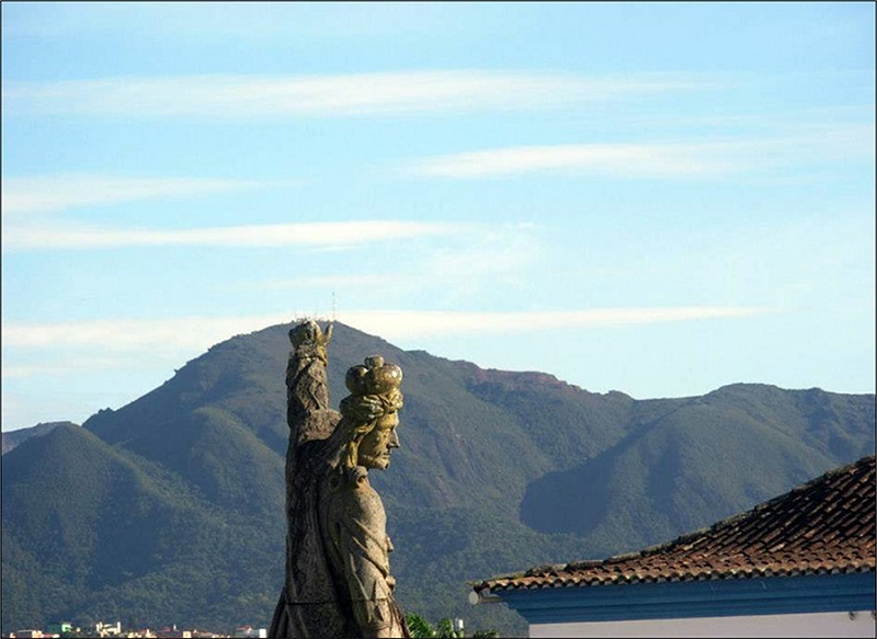 Várias das cidades fundadas com os primeiros campos consolidados de exploração aurífera no século XVIII passaram a ser vistas, no século XX, como estando sob os perigos do desaparecimento e da ruína (Gonçalves, 1996). A ameaça, nesse caso, era representada pelo relativo empobrecimento da população e pela ação do tempo na arquitetura colonial. As montanhas e a arquitetura urbana foram, então, conjugadas entre si, em sua classificação, como patrimônio cultural e ambiental do país. É o caso, por exemplo, dos 12 profetas de pedra sabão esculpidos pelo artesão barroco Antônio Francisco Lisboa (o Aleijadinho) no município de Congonhas, no Santuário Bom Jesus de Matozinhos, que tem como cenário uma serra observada pelo escultor como moldura para as esculturas que replicam figuras da Bíblia (Figura 1).