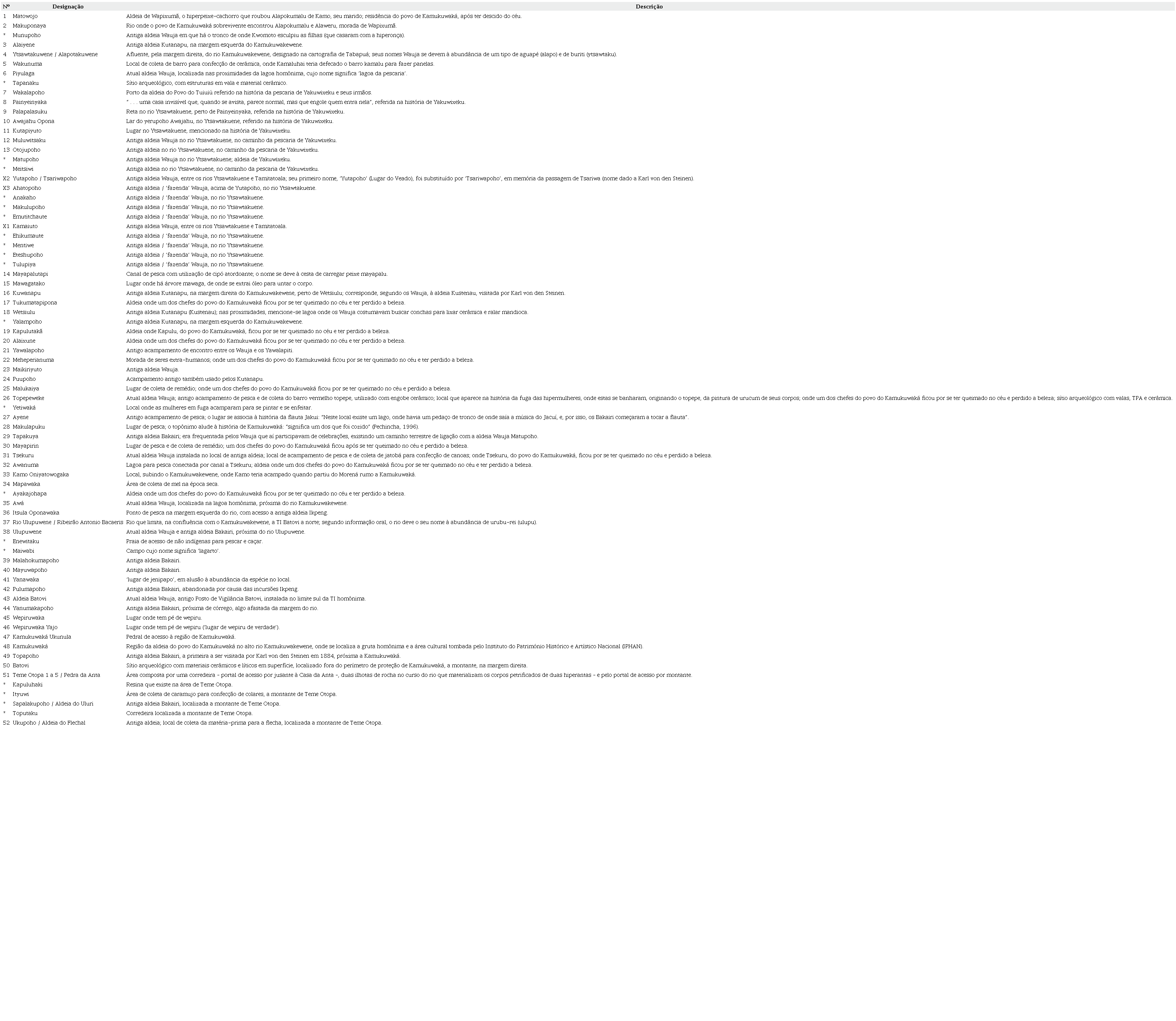 Em suma, ao basear-se num conceito restrito de passado ‘evidencial’ e ao que se entendeu constituir a ‘materialidade’ de Kamukuwaká e Sagihengu, a instrução de tombamento permitiu que importantes áreas de reprodução cultural, presentes nas narrativas alto-xinguanas, fossem deixadas de fora da área a proteger, sob o pretexto de se localizarem ‘longe’ dos lugares sagrados19. São disso exemplo, no alto Kamukuwakewene, Temeotopa (Pedra da Anta), Ukupoho (Aldeia do Flechal do Dono do Fogo), Sapalakupoho (Aldeia do Uluri), entre outros.