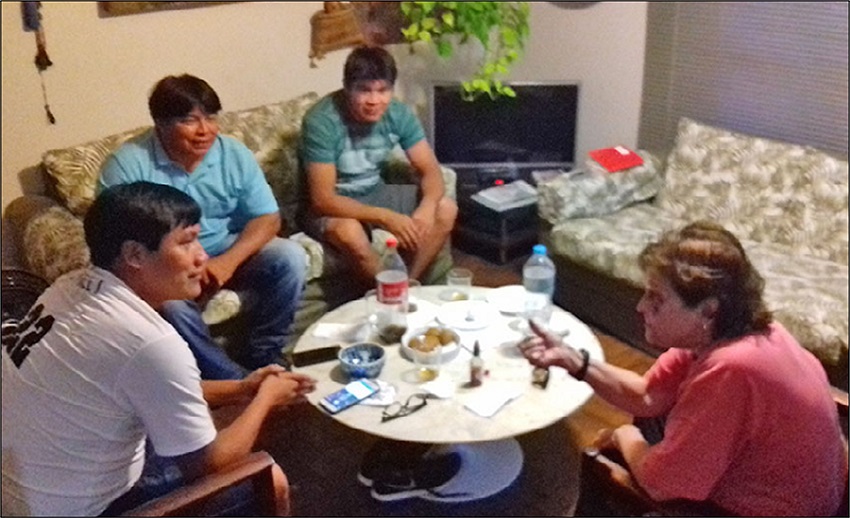 Voltando de Florianópolis, fomos a Sorocaba e a Campinas. Em Sorocaba, visitamos Célia Harumi Seki, filha da linguista Lucy Seki, infelizmente falecida em 2017. A professora Lucy Seki acompanhou os Kamayurá por cinco décadas e descreveu a sua língua (Seki, 2000, 2010). Vimos com Celia os livros que a professora Lucy deixou quase prontos antes de falecer, bem como os áudios e as fotografias que registrou no seu trabalho. A professora Lucy tirou muitas fotografias dos Kamayurá em vários momentos de sua história e levantou informações importantes, como um censo do povo Kamayurá. Ela também fez registros em áudio muito valiosos para o conhecimento da língua e das narrativas kamayurá.