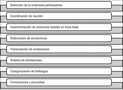 Durante el proceso cualitativo se llevaron a cabo entrevistas a profundidad en empresas del sector. Este tipo de entrevistas cualitativas en profundidad son no directivas, no estructuradas, no estandarizadas y abiertas; aquí lo que importa es la opinión del entrevistado, su modo de ver el mundo y, por ende, la subjetividad que el individuo imprime en el conocimiento que nos está compartiendo. El nombre, la duración de trabajo y la descripción del proceso de entrevistas realizadas a las organizaciones participantes en este estudio dependieron del acceso y de la pertinencia que tienen cada una de ellas, tomando un total de 14 empresas de base tecnológica.