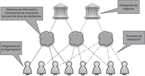 Es en este marco referencial que se puede inferir que la inteligencia de negocios depende de la dirección organizacional y de los estilos de liderazgo, para efectuar la implementación adecuada de los sistemas de información, de los mecanismos de innovación y de los procesos para la toma de decisiones que en conjunto se administran por medio de un sistema de gestión del conocimiento. Sin embargo, es a partir de la base de trabajadores, de los procesos y relaciones que se forman entre ellos, así como de la cultura organizacional, que surge la inteligencia de negocios adecuada al modelo de gestión (Medellín Cabrera, 2010).