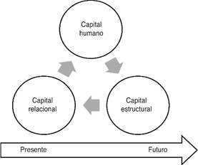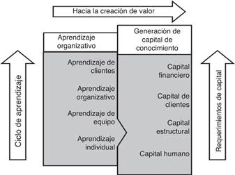 Toda organización busca el continuo mejoramiento de sus relaciones con sus clientes, empleados, accionistas y demás stakeholders1 involucrados con la organización. Los beneficios pueden ser sociales o económicos, el reto se perfila en la necesidad de lograr una mayor eficiencia y eficacia en sus procesos de producción, principalmente si estos se sustentan en los activos intangibles que son generados a partir de una estrategia de desarrollo basada en el conocimiento. En la Figura 3 se ilustra el enfoque de la conformación de valor hacia el conocimiento.