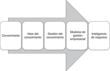 A partir de la gestión del conocimiento, surge el concepto de inteligencia de negocios (Business Intelligence , inteligencia empresarial o inteligencia de negocios); se llama así al conjunto de estrategias, acciones y herramientas enfocadas a la administración y creación de conocimiento mediante el análisis de datos existentes en una organización o empresa (Ahumada-Tello et al., 2012).