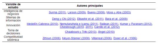 En la Tabla 3 se ilustran algunos de los principales autores que sustentan la estrategia de investigación en este documento.