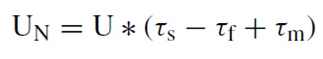 (10)El modelo propuesto considera una demanda exógena esperada D. El administrador del SVE puede programar diversos escenarios manipulando la variable de tendencia (m) del entorno para estimar la demanda tendencial, siguiendo una función lineal respecto a la cantidad de clientes netos UN (ecuación 11). Es posible ganar o perder clientes mediante incrementos o decrementos en tres rubros (ecuación 12): en la tasa de satisfacción del cliente Ƭs estimado con una variable proxi, cantidad de clientes entre empleados (ecuación 13), por la tasa de deserción Ƭf (ecuación 14) y por la tasa de esfuerzo en mercadotecnia Ƭm debido a la inversión M en este rubro (ecuación 15).