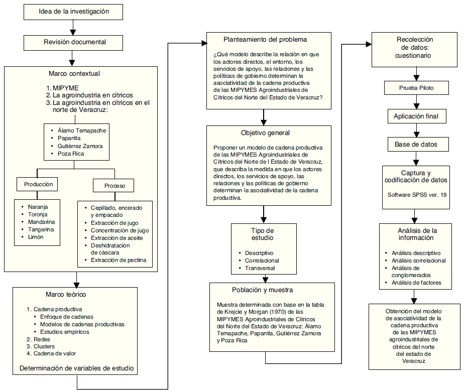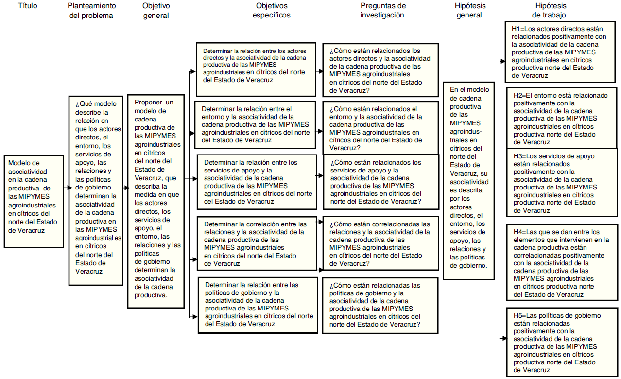 El objetivo de la investigación busca responder esta pregunta: ¿Qué modelo explica la asociatividad de la cadena productiva de las MIPYMES agroindustriales de cítricos ubicadas en la parte norte del estado de Veracruz?