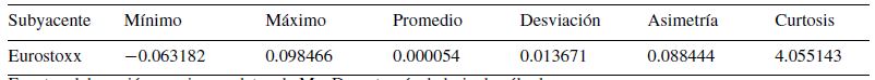 Estimación de los estadísticos básicos de los rendimientos del Eurostoxx