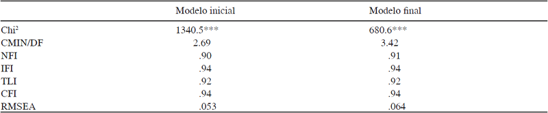 Se considera importante mencionar aquí que al realizar la prueba de normalidad de todas las variables observadas con las que se alimentó a los modelos estructurales, ninguna cumple con el criterio de normalidad (con la prueba de Kolmogorov-Smirnov). Se supone que el criterio de normalidad es un supuesto requerido en el análisis estructural. Sin embargo, existen evidencias que sugieren que cuando se tienen muestras muy grandes (n=100 o mayor), como en este caso, la no normalidad de las variables observadas tiende a no afectar la exactitud del modelo estructural (Jannoo, Auchoybur y Lazim, 2014).