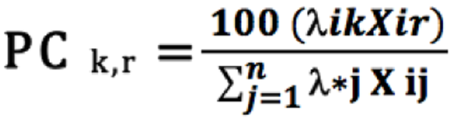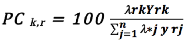 En tanto que el porcentaje de contribución de la entidad eficiente k a los valores objetivo del input i de una entidad eficiente (PCk,r) será: