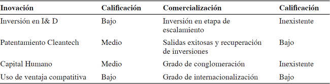 De acuerdo a datos presentados por Aguirre, Gallegos & Pérez (2015), sobre la evaluación de extensiva sobre 200 emprendedores, así como talleres con expertos de la academia, instituciones financieras y sector privado, se determinó que el sector de energías limpias se encuentra en una etapa inicial, sobre todo si se compara con países de la OCDE, lo que se muestra en la siguiente tabla: