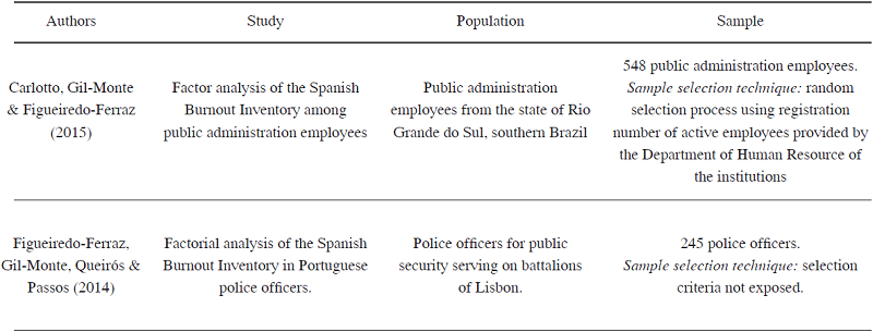 Faced with the high valuations of the results in the analyzed studies, it is possible to find some differences compared to what Mercado & Gil-Monte (2012) presented: