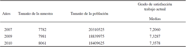 Para el contraste empírico de los fundamentos teóricos analizados en el presente artículo utilizaremos los últimos microdatos de la Encuesta de calidad de vida en el trabajo (ECVT), facilitados por el Ministerio de Empleo y Seguridad Social correspondientes al año 2010, con la finalidad de explicar el grado de satisfacción con el trabajo actual a partir del puesto de trabajo. El ámbito geográfico de esta encuesta es todo el territorio español, exceptuando Ceuta y Melilla, y el ámbito poblacional está delimitado por la población ocupada de 16 y más años que reside en viviendas familiares. Utiliza como marco una relación de viviendas y habitantes de las mismas, obtenida a partir del Padrón Continuo a febrero de 2010.