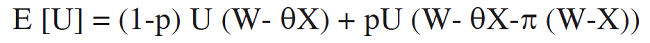 One of the first such theories, the theory of deterrence, was developed by American scientists M. Allingham and A. Sandmo in 1972 (Allingham & Sandmo, 1972). It was built upon the theory of the economics of crime by G. Becker, Nobel Laureate, linking a rational choice of the individual with the comparison of expected gains and losses (expenses) (Becker, 1968). The starting position of the deterrence theory is causation of economic behaviour of an individual by the rationality of his choice, aimed at maximizing the benefits. According to this assumption, a reasonable person will assess the advantages of successful tax evasion based on the knowledge of tax rate, probability of Tax Audit and the amount of fines. Rational choice is carried out between two options: 1) to declare completely the actual revenue (W); 2) to show a lower actual revenue (X). The second option can bring benefits in case of not discovering the understated profits by controlling authorities. That is, expected benefits (the usefulness - U) are directly dependent on the income and are inversely related to the probability of the audit and the amount of fines. This correlation was found by M. Allingham and A. Sandmo in the model of expected usefulness, taking into account the following variables (economic parameters); tax rate (θ), probability of the audit (p), amount of fines (π), as follows (Allingham & Sandmo, 1972):