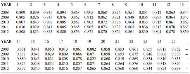 The DEA converts the various inputs and outputs on a scale of measure of efficiency, building a nonparametric frontier of having a great efficiency on a set of data allowing a measure of comparative efficiency, thus generating a scale of relative efficiency for the group analyzed (Hu, Iq, & Yang, 2012). This analysis provides an indicator that varies from 0 to 1 or from 0% to 100%. The closer to 1, the more efficient is considered the DMU and scores equal to 1 indicates efficiency.