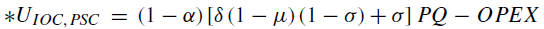 Ahora, entre PSC y LC, para el gobierno LC podría ser más ventajoso que PSC, pero no así para la IOC. Es decir, puede asumirse que ωμα PQ > μα(1-σ)(1-δ)PQ. Por el lado de la IOC, * > **, pero condicionado a que el porcentaje de reparto sea alto, así como que el porcentaje de cost oil de recuperación sea atractivo. Es decir, deben asumirse los anteriores porcentajes para que claramente se tenga del presente análisis que * > **> *** para la IOC.