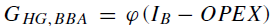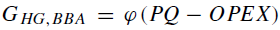 Los costos operativos OPEX se deben restar del ingreso bruto y un porcentaje φ de lo restante determina el ingreso del gobierno o HG GHG,BBA