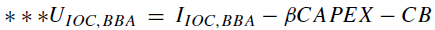 Este pago a la IOC incluye la amortización de la inversión βCAPEX, el pago de cargos bancarios CB y la remuneración a la IOC que en este caso equivale a la utilidad neta de la IOC UIOC,BBA, la cual se reduce al tercer equilibrio como sigue: