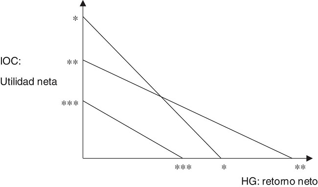 La tasa de reparto (δ) es variable y sujeta de negociación entre el HG o principal, y el agente estratégico IOC. Por su parte, la IOC debe pagar una tasa de impuestos μ sobre su utilidad operativa.