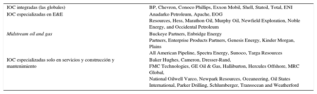 Las empresas podrían separarse por subsector dentro de la cadena de hidrocarburos. Usando la clasificación de un estudio de Mittal, Dholakia, Han y Dayal, 2015, para empresas de los EE. UU., es notorio que se trata de un mercado de alta tecnología, con grandes requerimientos de capital y financiamiento, y por ende, un sector de empresas concentrado y de tipo oligopolio (Mittal et al., 2015). Las empresas contratistas son las siguientes (tabla 1).