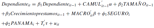 Donde Dependiente incluye las variables tasa de interés por depósitos y tasa de crecimiento de los depósitos, para verificar la hipótesis de disciplina de mercado vía precio y cantidad, respectivamente.