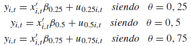 En la presente investigación, como hemos indicado anteriormente, empleamos regresiones cuartílicas que son un caso particular de las regresiones cuantílicas en el que: