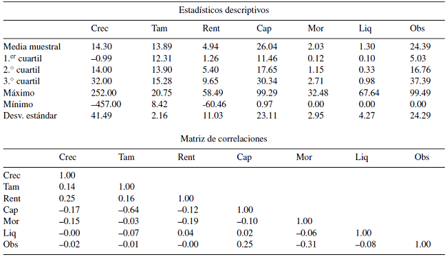 Siguiendo la literatura previa se asume que existe causalidad entre el crecimiento y el tamaño. Por tanto, puede surgir un posible problema de endogeneidad que debe ser abordado. Los instrumentos utilizados para solucionar el problema de endogeneidad serán las variables explicativas retardadas, ya que deberán tener la capacidad de aportar la información sobre la variable explicativa.