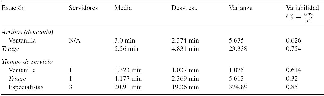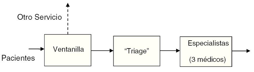 Las tres etapas comparten un área común de espera. Los administradores han observado un incremento en la demanda del servicio, lo que ha traído como consecuencia que es más frecuente observar una cantidad considerable de personas esperando a ser atendidas. Desde hace varios años operan con tres médicos especialistas que son los que atienden a los pacientes que salen deltriage. Las preguntas que desean responder los administradores son: