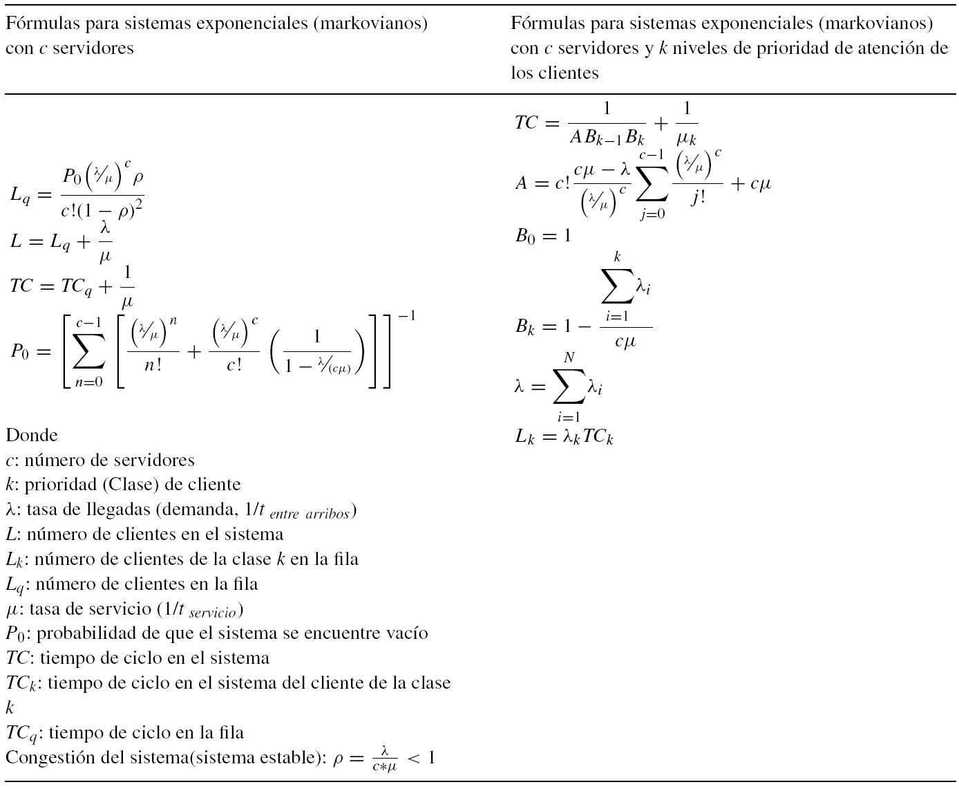 Para obtener las propiedades mencionadas arriba se pueden emplear medios analíticos derivados de la teoría de líneas de espera. Las herramientas analíticas permiten entender las relaciones existentes entre cada uno de los elementos de un sistema, a diferencia de otros enfoques de análisis, que con frecuencia asemejan cajas negras (Hopp y Spearman, 2008). El enfoque de simulación, aunque permite obtener las mismas propiedades, es recomendable emplearlo cuando no existe un modelo analítico del sistema a analizar (Law y Kelton, 2000). Por otro lado, no en todos los sistemas hospitalarios se espera tener un programa de simulación especializado; en cambio, el acceso a las fórmulas analíticas es universal y gratuito. Como se menciona en el trabajo deSong, Tucker y Murrel (2013), los estudios empíricos (como el presente) en sistemas hospitalarios son en proporción menos abundantes que su contraparte en los ámbitos de manufactura y producción, lo que genera un área de oportunidad para los profesionistas que administran esta clase de sistemas para aplicar diversas herramientas analíticas bien conocidas en otras áreas.