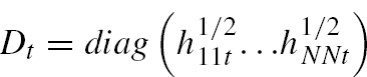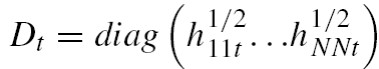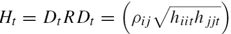 es cualquier modelo GARCH univariante. Y R=(ρij) es una matriz simétrica definida positiva con ρii = 1, ∀ i