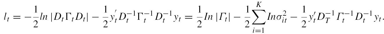 Finalmente, Tsay y Tsui (2001) retoman el modelo anterior y, asumiendo rendimientos normales, la función logarítmica de verosimilitud (lt) de la observación yt es: