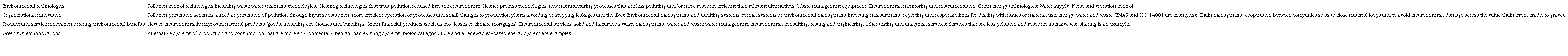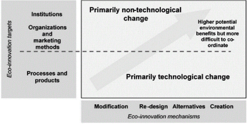 So far eco-innovation can be technological and non-technological, including organizational, social and institutional innovation (Rennings, 2000).