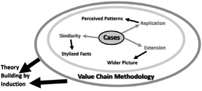 Recognizing patterns of relationships among constructs within and across cases is a crucial task for coming up with a theory. Case studies are different from lab experiment in the sense they emphasize the rich real-world context in which the phenomena occur. The theory-building is an emerging process that is based on recursive cycling and puzzling the case data, theoretical creation of constructs or models, posing propositions and/or midrange theory from cases, all of these based on the empirical evidence (Eisenhardt and Graebner, 2007, p. 26).