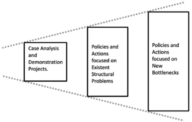 The following diagram (Figure 4) describes the different policies and measures that are needed from a time perspective. The first type of nanotechnology innovation affects society and markets in the short term. The outcomes of this measure are particularly focused on generating awareness and demonstration effects about this new technology and its applications. It is particularly important when we talk about new products with new materials, given the higher risks and uncertainties involved. The other option is to develop old products with AM. This latter type of innovation is an interesting platform for less developed countries to start with nanotechnology-based innovation process, because they involves lower risks.