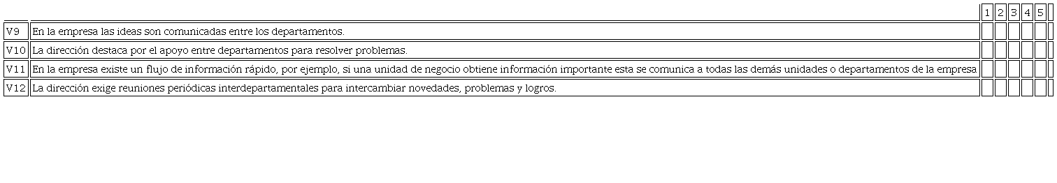 1.Totalmente en desacuerdo, 2. En desacuerdo, 3. Indiferente, 4 De acuerdo, y 5 Totalmente de acuerdo.