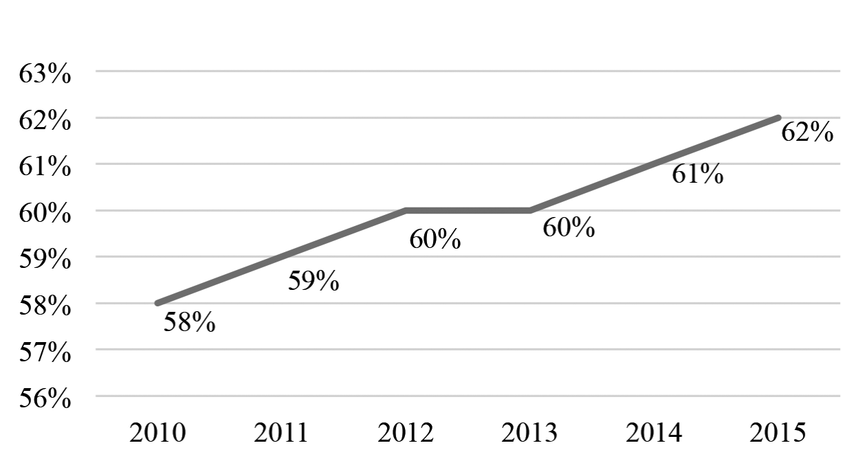 Figure 1 also shows that comparability was lowest in 2010 (roughly 58%). However, in subsequent years, comparability gradually increased to moderate levels (59% to 62%), which allows the hypothesis H2 (Figure 1) not to be rejected. Despite moderate indexes, this upward trend may indicate an improvement in comparability over time, which may in turn suggest that these Brazilian companies had garnered more experience with IFRS.