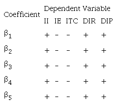 When the dependent variables are Interest Expense (IE) and Income Tax and Social Contribution on Net Income (ITC), the expected signal for the five independent variables is negative. Considering that the classification of these items into the cash flows of operations would reduce this flows, companies are expected to classify these items into another flows (investment, financing, or otherwise).