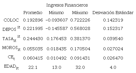 utilizadas fueron: Colocaciones, depósitos, tasa de interés, morosidad,